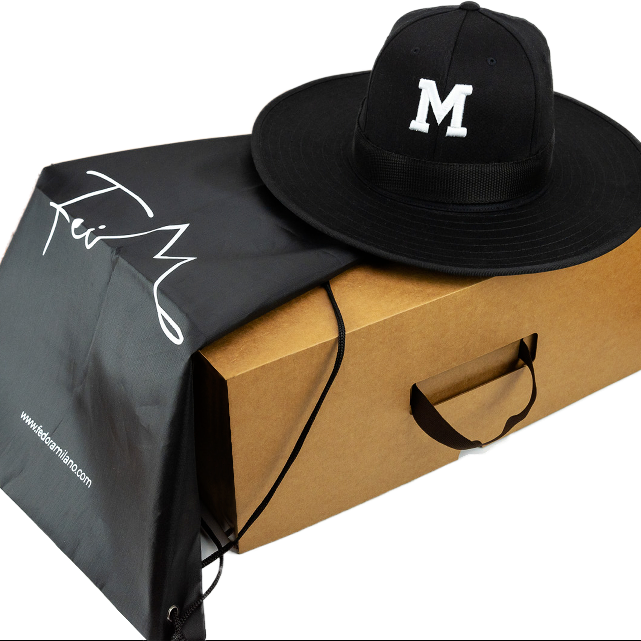 FEIM sarà spedito e custodito con la massima cura all'interno di una scatola elegante. All' interno, i nostri clienti troveranno una sacca intelligente in tessuto ripiegabile, compatta e leggera, che si adatta ad ogni esigenza. Può essere portata a spalla, rendendola pratica per custodire il cappello Feim durante viaggi e occasioni speciali. Unisce funzionalità e stile, proprio come i nostri cappelli!